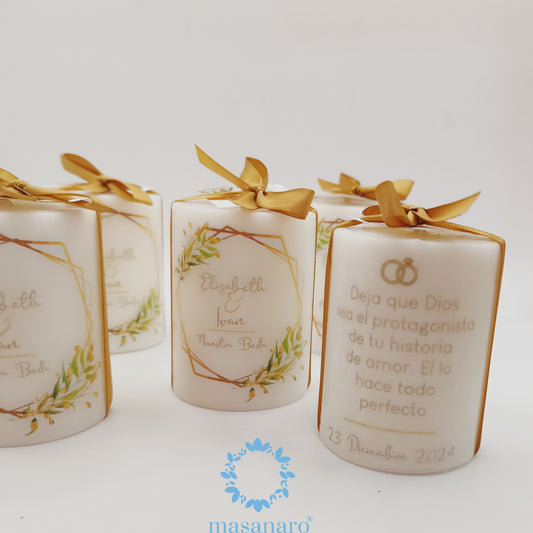 Velas personalizadas con hermosos diseños, ideales para agradecer a tus invitados en...