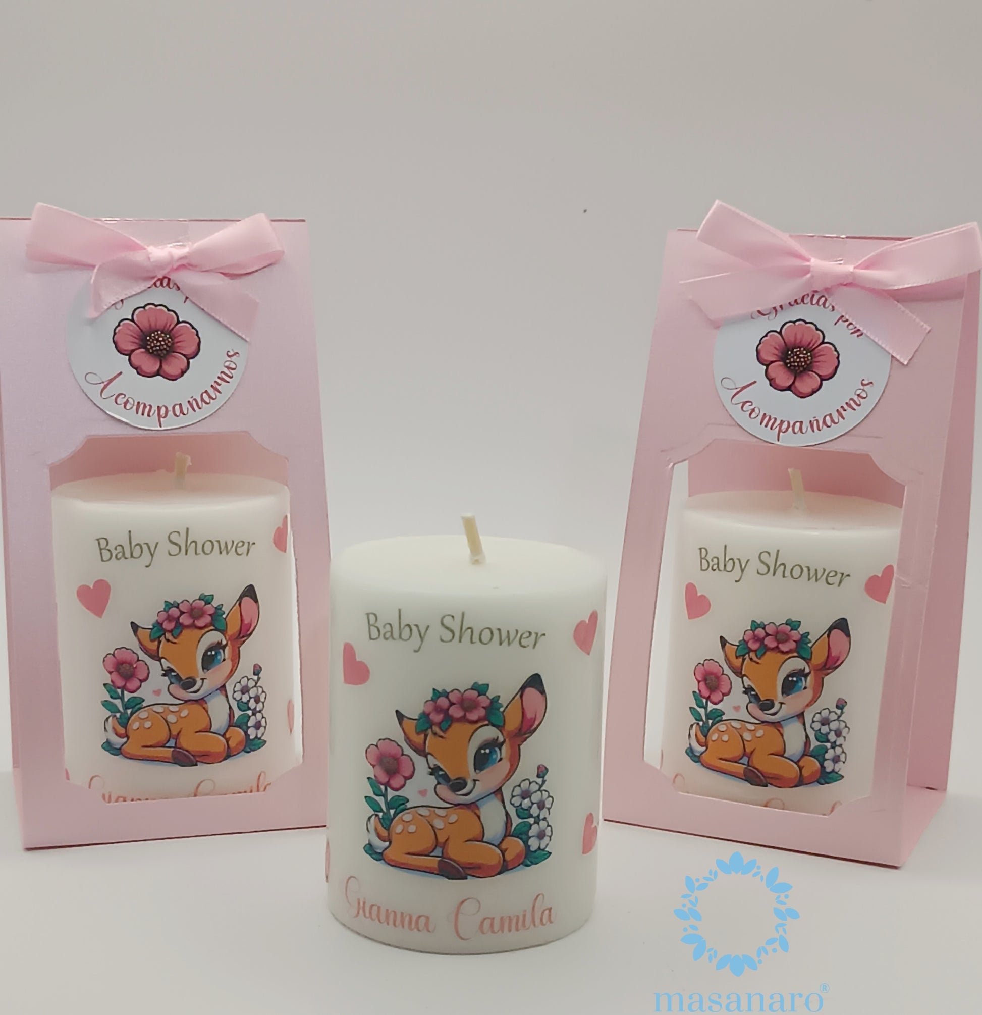Vela con empaque de cartón. Diseño Venadita bebe