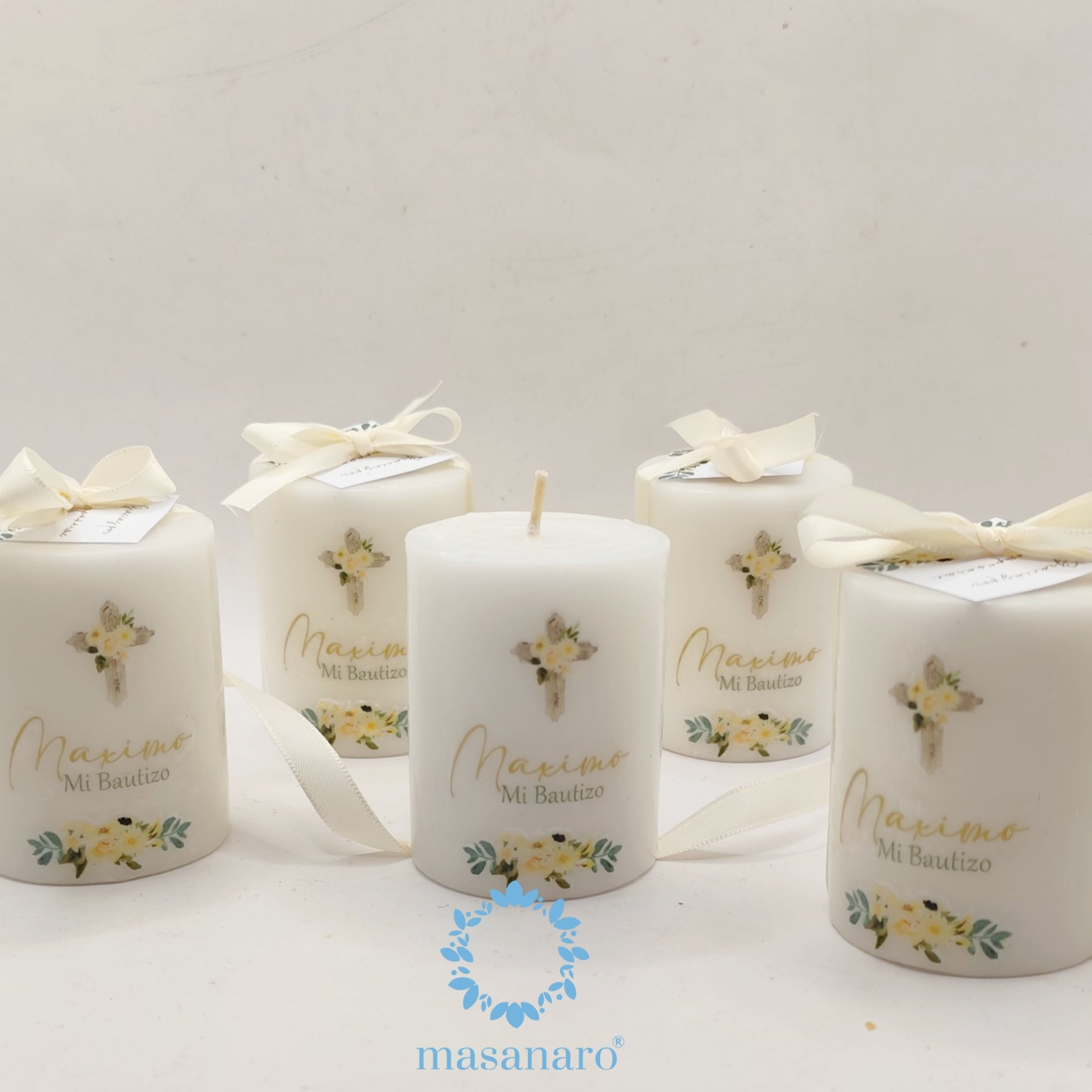 Vela elaborada con parafina refinada y pabilo de algodón, con un suave aroma a canela.