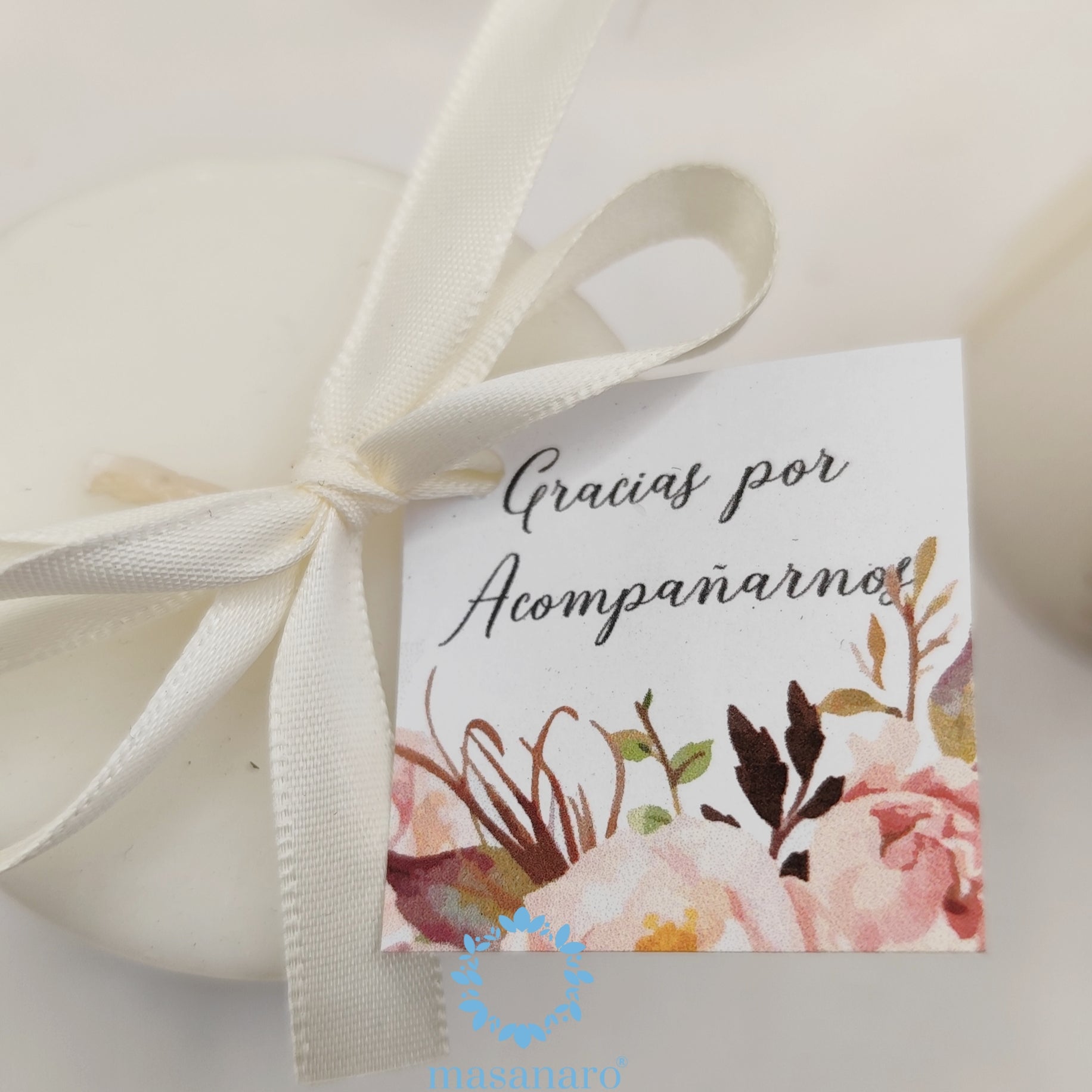 Incluye etiqueta de “Gracias por acompañarnos” y listón decorativo.