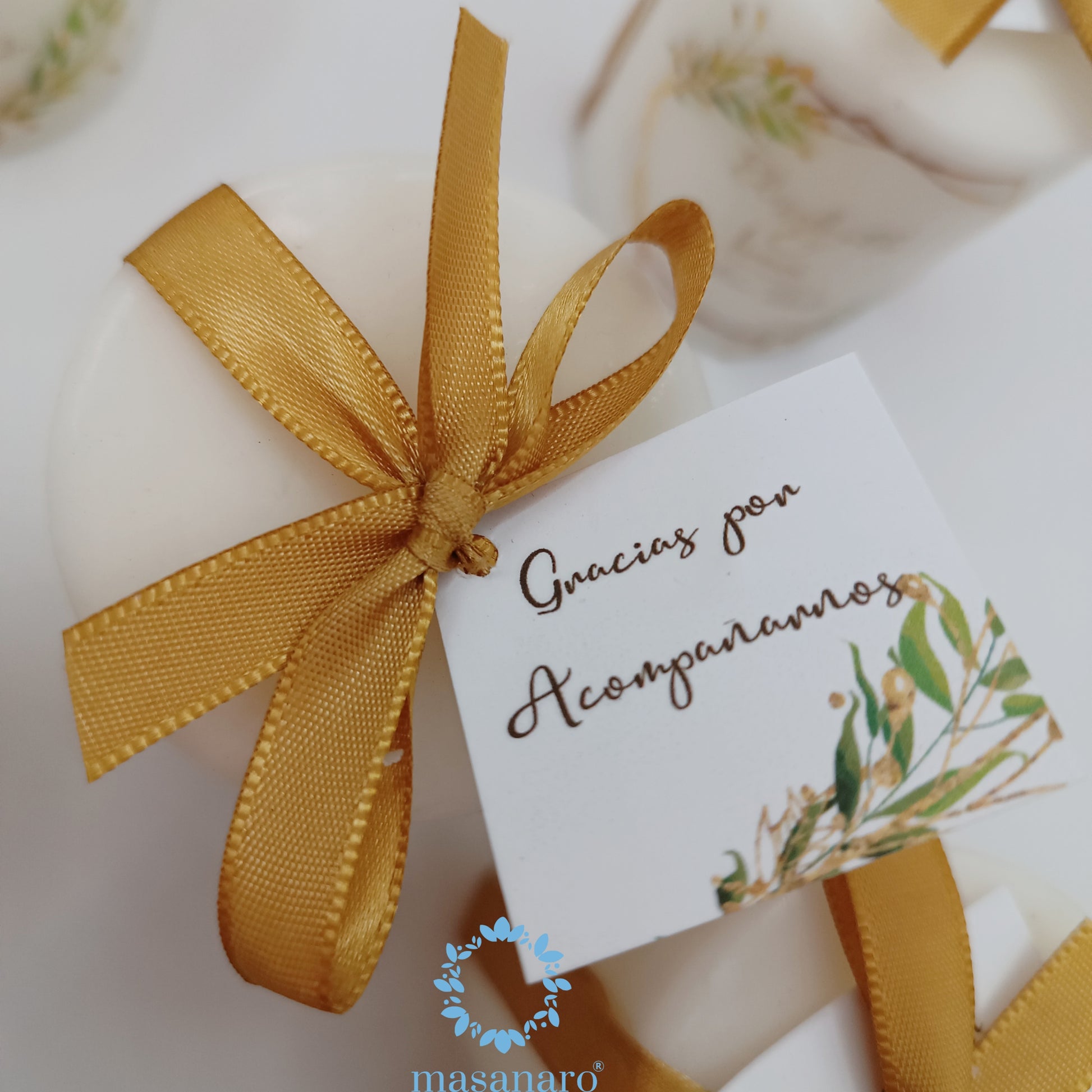 Incluye etiqueta de “Gracias por acompañarnos” y listón decorativo.