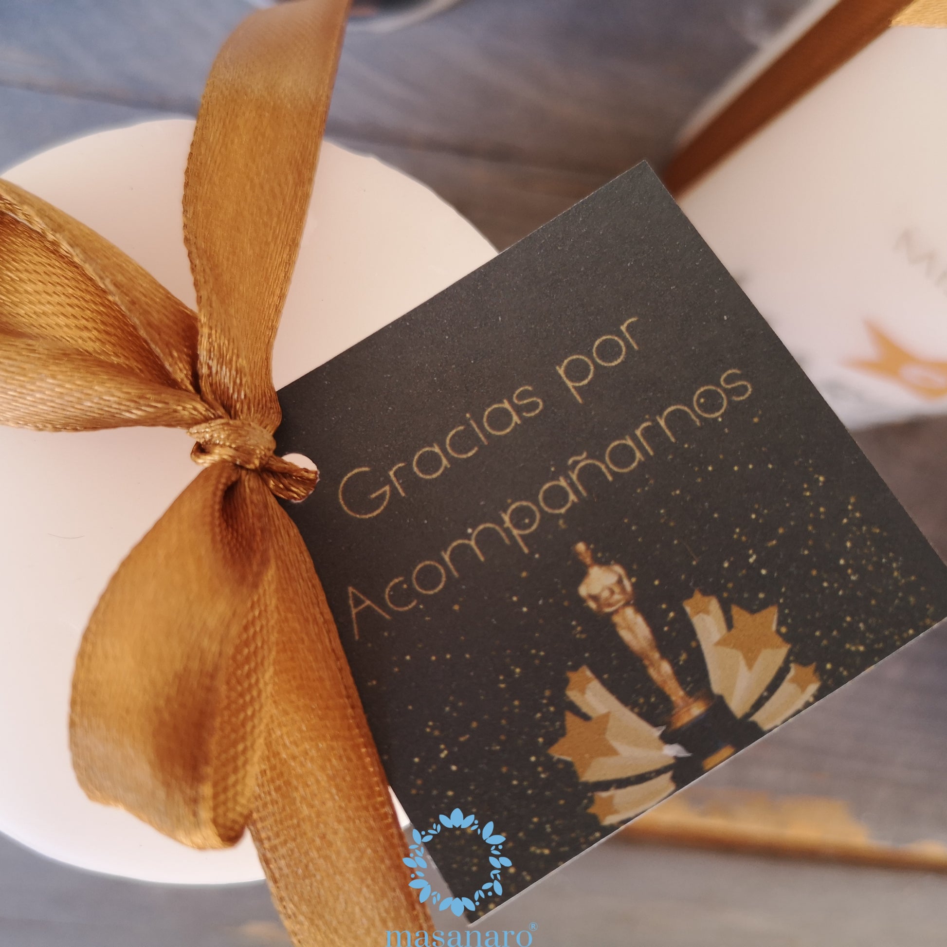 Incluye etiqueta de "Gracias por Acompañarnos" y listón